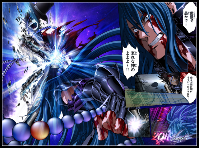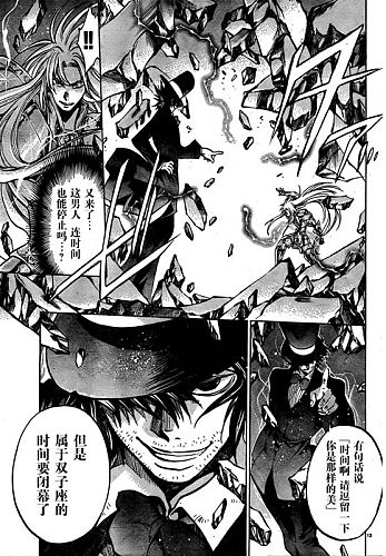 Yoma ne se laisse pas démonter. Il lance le Rewind Bio, une attaque qui devrait faire retourner Aspros au néant. Mais le saint s' est uni à l' âme de son frère et ce coup est inefficace. Gemini utilise le Galaxian Explosion. Le spectre, ivre de rage, révèle sa vraie nature.
