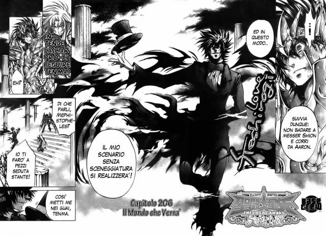 Yoma réapparaît dans le trajet des temples. Il veut stopper Shion qu' il considère comme un élément perturbateur dans ses plans. Mais Tenma arrive et veut venger la mort de sa mère. Le Méphistophélès montre une vision du futur où le prochain Pégase, Seiya, est en mauvaise condition. Il est dans une chaise roulante. Le spectre veut empêcher que cela arrive et demande à son fils de suivre son scénario.
